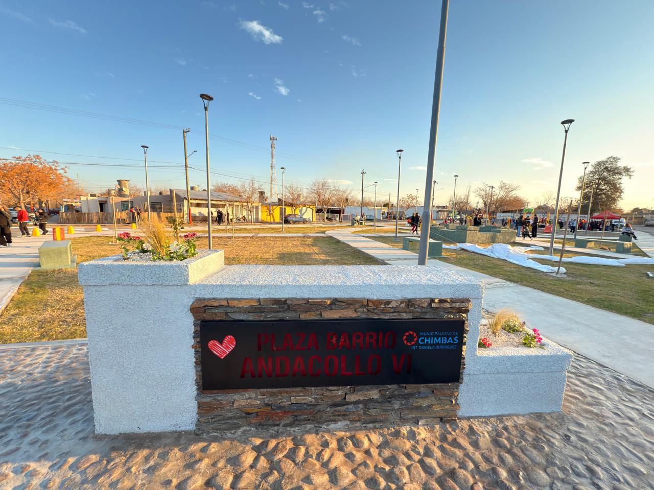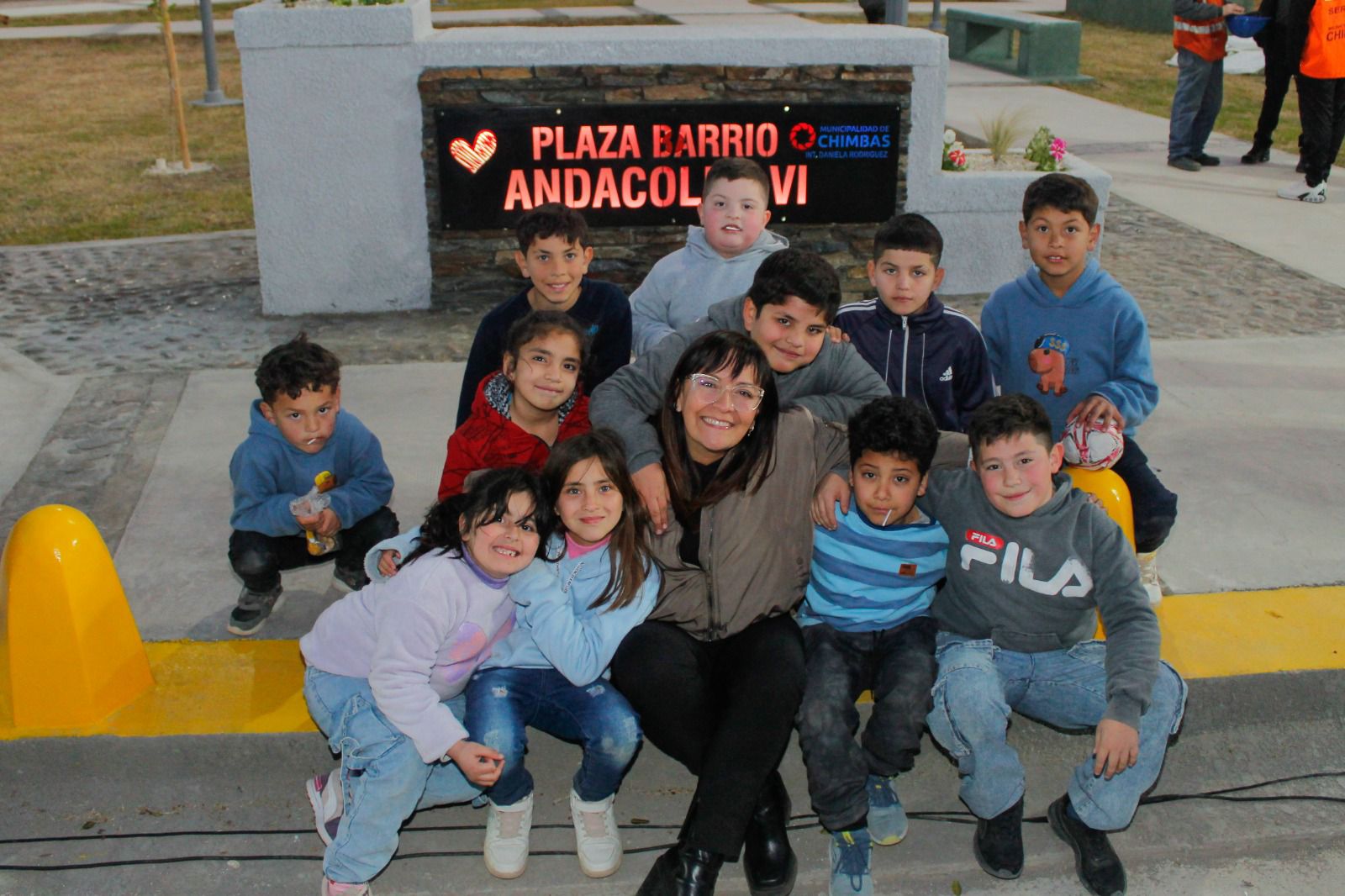 La intendenta Municipal de la Ciudad de Chimbas, Daniela Rodríguez, junto a vecinos del Barrio Andacollo VI, dejaron inaugurada la nueva plaza del lugar.