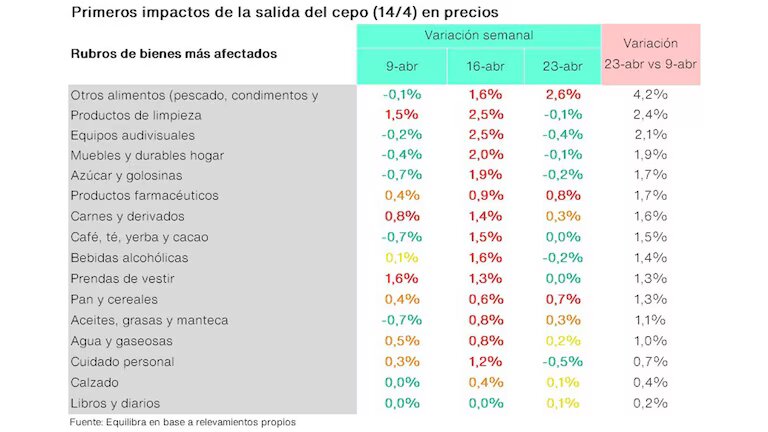 Primeros impactos de la salida del cepo en precios (Equilibra)