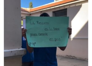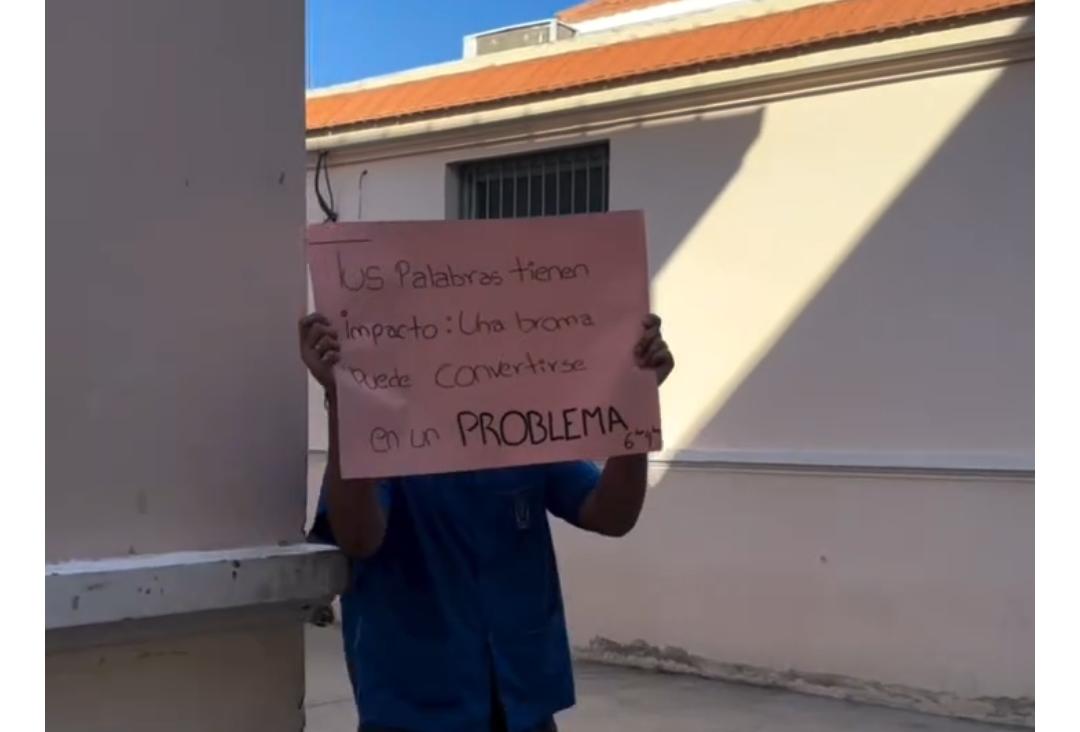 A lo largo del video, los estudiantes exhiben carteles con consignas dirigidas a sus pares y a la sociedad en general. “Tus palabras tienen impacto: una broma puede convertirse en un problema” y “cuidar es tarea de todos” sintetizan el mensaje central de la campaña.