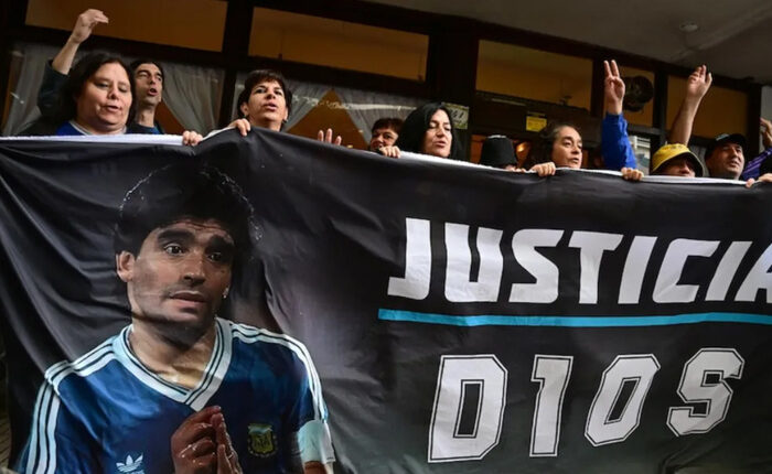La muerte de Maradona, investigada bajo la carátula de homicidio simple con dolo eventual, tiene como acusados a Leopoldo Luque, Agustina Cosachov, el psicoanalista Carlos Díaz, la coordinadora de Swiss Medical Nancy Forlini, el médico Pedro Di Spagna, el coordinador de enfermeros Mariano Perroni y el enfermero Ricardo Almirón.