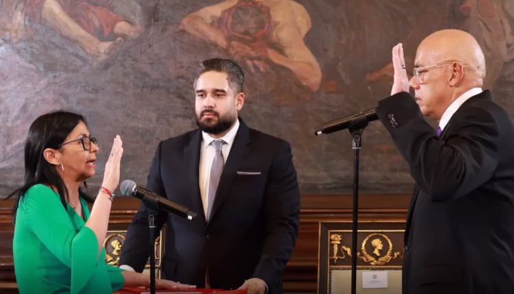 La dirigente chavista fue proclamada en un acto encabezado por su hermano Jorge Rodríguez, presidente del Parlamento, y con la presencia de Nicolás Maduro Guerra, hijo del dictador derrocado.