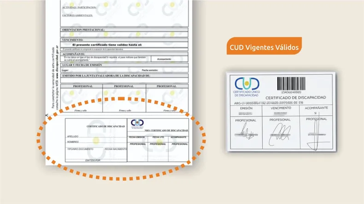 La funcionaria también señaló que esta modalidad ya se aplica en otras provincias y que los CUD, tanto los antiguos en papel como los actuales con código QR, son válidos en todo el territorio nacional. La parte inferior del certificado puede cortarse y plastificarse para protegerlo. Antes, la credencial azul solo permitía viajar gratis dentro de San Juan, mientras que fuera de la provincia era necesario presentar el CUD.