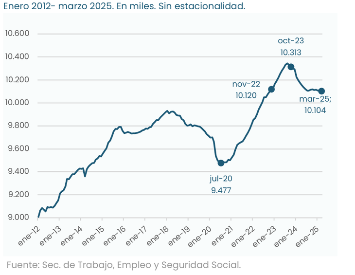De esta manera, el número total de trabajadores formales a marzo de este año se situó en un valor similar al de julio y agosto de 2024.