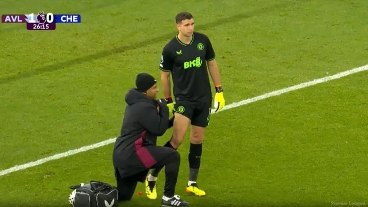Dibu Martínez, arquero de la Selección Argentina, acusó una molestia en el duelo de Aston Villa con Chelsea.