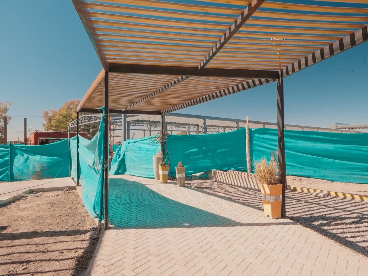 Además, se ejecutan nodos de acceso y circulación que ordenarán los ingresos y recorridos internos, incorporando veredas, cordones, cruces peatonales, iluminación y mobiliario urbano. También se avanza en la instalación de tótems identificatorios sobre la Ruta Nacional 141, que contarán con iluminación propia y reforzarán la identidad del paraje.