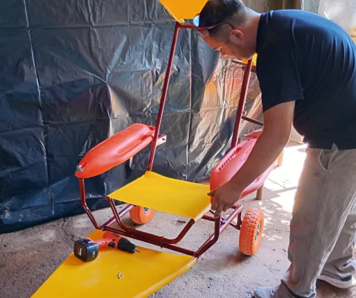 Las sillas, fabricadas por un emprendedor sanjuanino, cuentan con un cuadro de acero liviano y resistente al agua, asiento y respaldo de lona reforzada, ruedas especiales para desplazarse por arena o piedras, y flotadores laterales que aseguran estabilidad en el agua. Tienen una capacidad de hasta 150 kilos y estarán disponibles en los tres diques de manera gratuita.