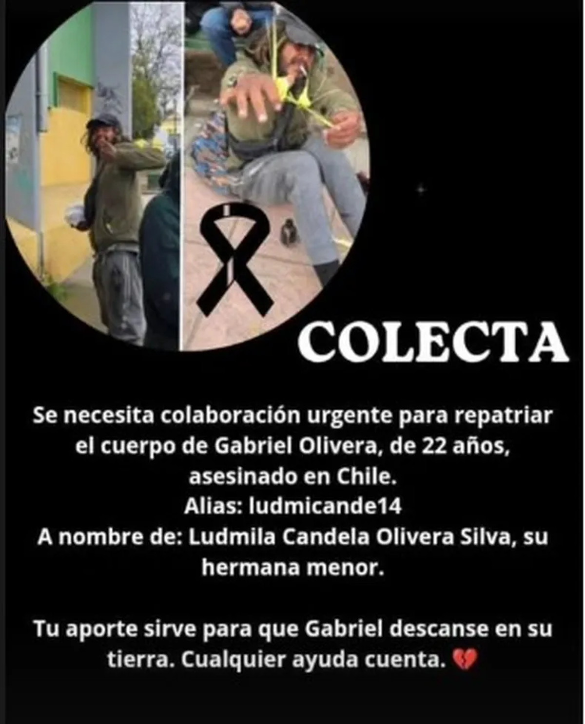 Ante los elevados costos que implica traer el cuerpo de regreso, su hermana, Ludmila Candela Olivera Silva, lanzó una campaña solidaria. Las colaboraciones se reciben a través del alias ludmicande14 y se destinarán al traslado del cuerpo, además de los gastos de estadía y alimentación de los familiares que permanecen en Chile.