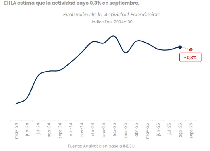 Las proyecciones de las consultoras muestran que el noveno mes del año no fue positivo para la actividad económica. Para el acumulado de 2025 se espera un crecimiento menor a 4%.