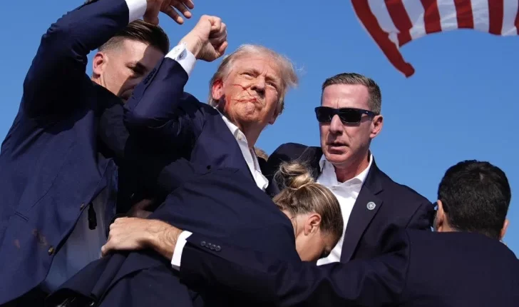 El ex presidente estadounidense fue visto con sangre en la oreja derecha mientras era rodeado por agentes de seguridad, que lo sacaron del escenario mientras levantaba el puño hacia la multitud.