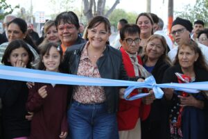Este viernes, la intendenta Municipal de la Ciudad de Chimbas, Daniela Rodríguez, junto a los vecinos del Barrio Dr. Leopoldo Bravo, dejaron inaugurada la nueva plaza del lugar y encendieron las luminarias LED para todo el sector.
