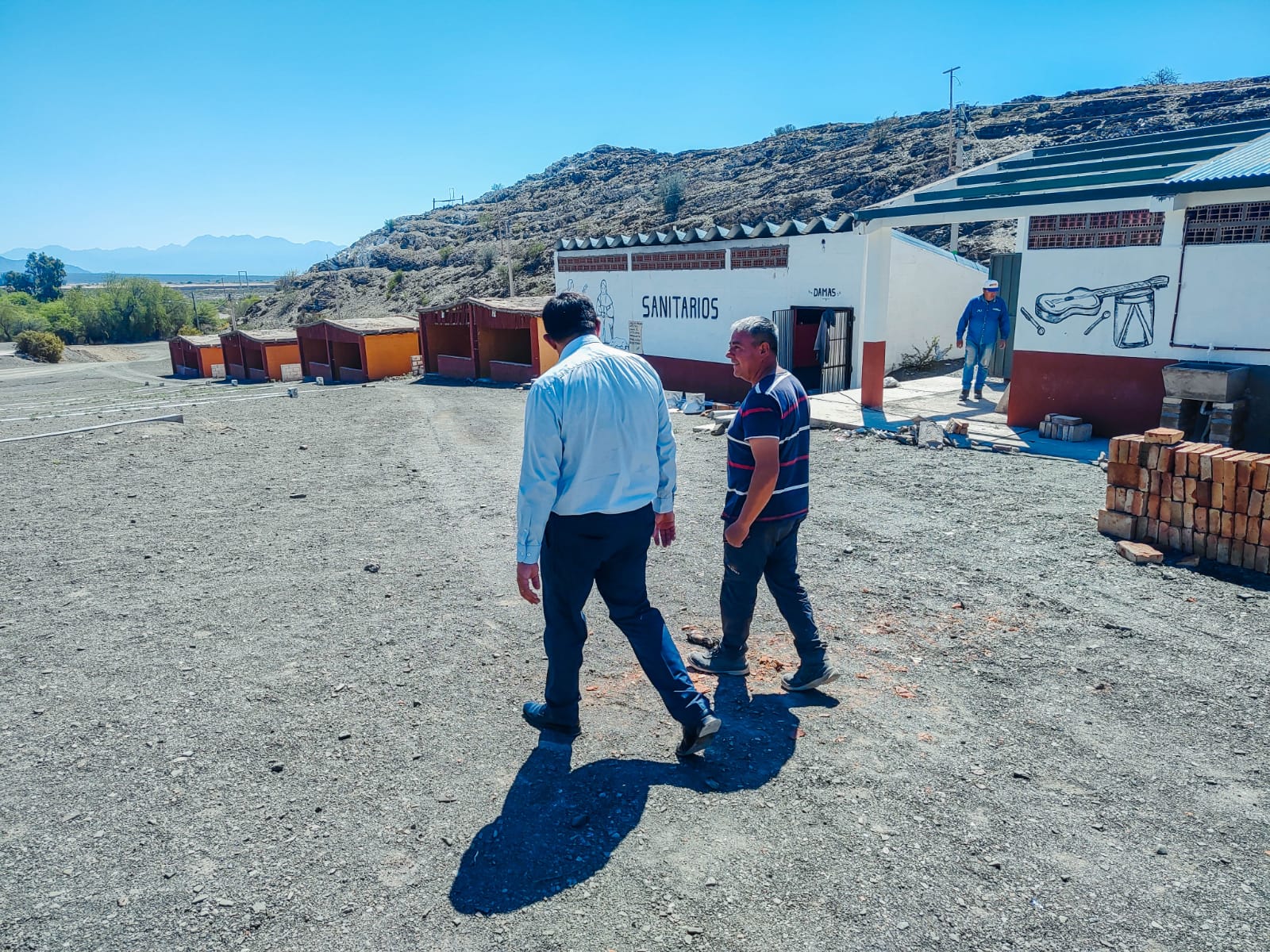 Se están realizando los acondicionamientos de las baterías de baños, poniendo en condiciones los ranchos de comida, adaptando los accesos del escenario para la técnica y dejando en pleno funcionamiento las luminarias del predio del escenario, accesos y estacionamientos.