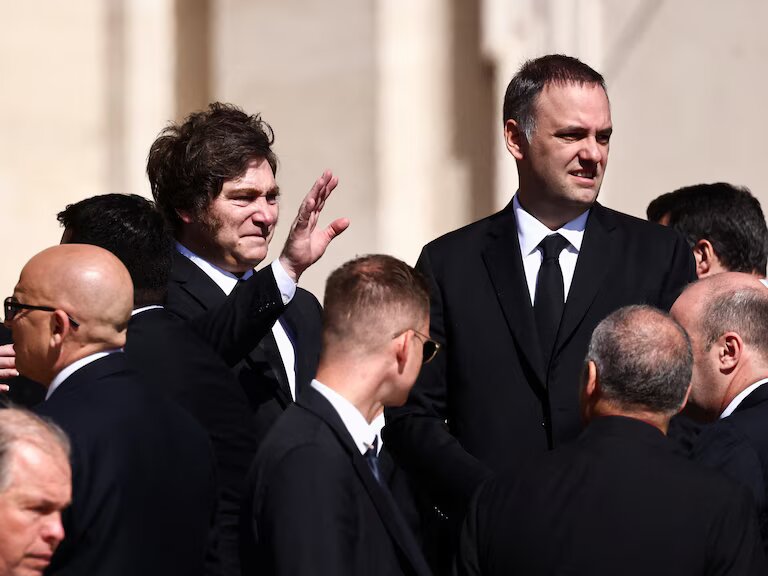 El presidente Javier Milei, junto a Manuel Adorni en el Vaticano (REUTERS/Yara Nardi)