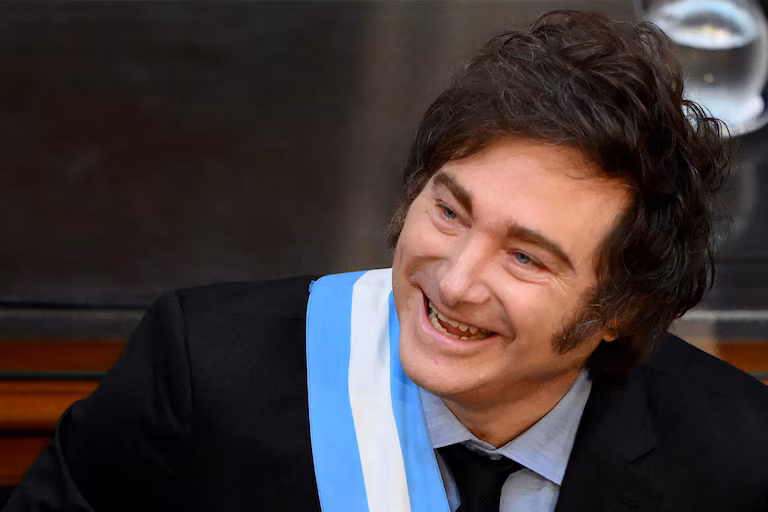 Argentina's President Javier Milei smiles
