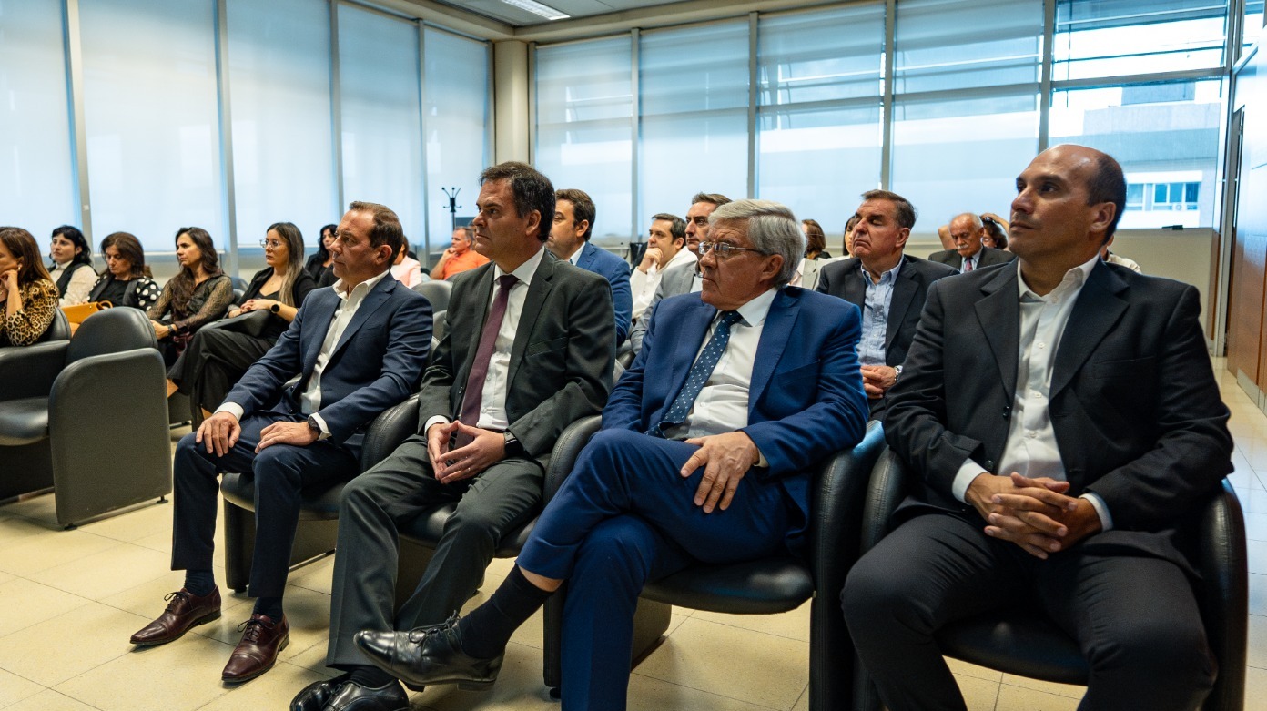 El Ministro de Salud, Amílcar Dobladez; el Fiscal de Estado, Sebastián Dávila; y el Interventor de la Obra Social Provincia, Rodolfo Fasoli, realizaron la apertura del conversatorio.