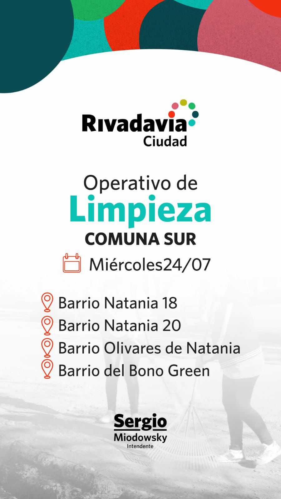 Rivadavia Ciudad y sus agentes municipales abordarán dos zonas diferentes en la semana del 22 al 27 de julio