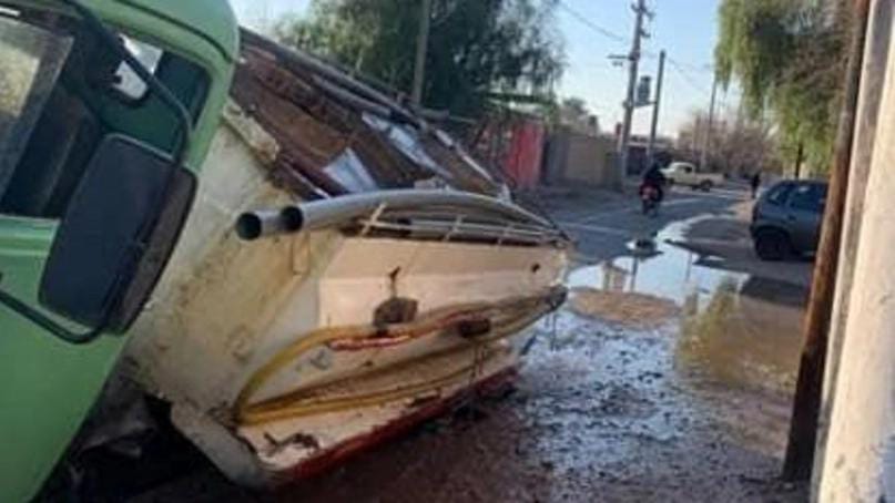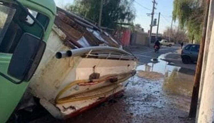 El pavimento cedió y un camión cisterna quedó atrapado en Capital