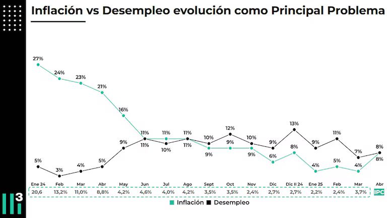 La importancia de la dinámica de precios para el Gobierno de cara a las elecciones queda reflejada en las encuestas. Un relevamiento de Casa Tres reflejó que en abril la inflación volvió a empatar con el desempleo en el ranking de “principal problema” que perciben los argentinos.