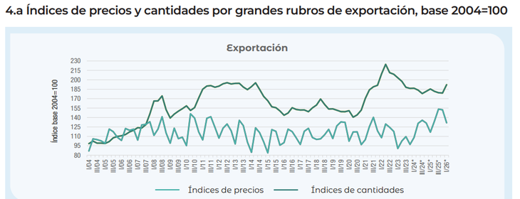 En términos agregados, el precio de las ventas a otros países creció 3,6% entre el primer trimestre de 2025 y el mismo período de 2026. Debido a que el de las importaciones lo hizo casi en la misma proporción (+3,7%), los datos oficiales reflejaron que los términos de intercambio se mantuvieron estables.