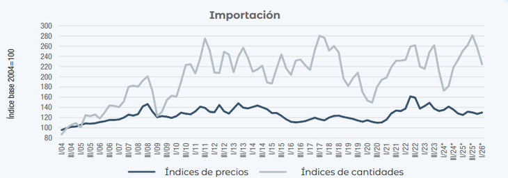 Este escenario muestra que la balanza comercial comenzó 2026 más holgada por “buenos” y “malos” motivos. Entre los primeros resalta la buena performance de las exportaciones, no solo por la mejora de precios (alimentada por la guerra en Medio Oriente) sino también por el alza en cantidades. Del otro lado aparece una actividad económica deprimida en los sectores que más demandan insumos importados, como la industria manufacturera.