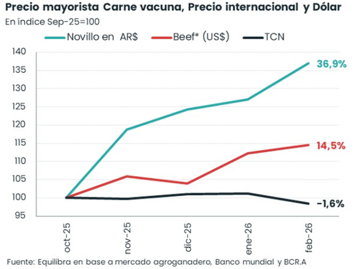Vale recordar que los aumentos domésticos en carnes explicaron buena parte de la aceleración de la inflación en el inicio de 2026. Al respecto, el director de análisis macroeconómico de la consultora Equilibra, Lorenzo Sigaut Gravina, marcó hace aproximadamente un mes que “el principal driver de la escalada del precio fue la suba en el mercado mayorista de la hacienda vacuna, que a su vez coincidió con la fuerte mejora del valor global del beef”. “Perspectivas de apertura de mercados de exportación y el ciclo ganadero local explicaron el resto de la escalada”, profundizó en su momento.