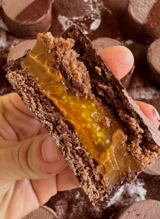 • Bronce: Enésimo – Alfajor de masa de poroto aduki con cacao y café, relleno de dulce de leche y maní sin azúcar, con ralladura cítrica y cobertura de chocolate semiamargo.