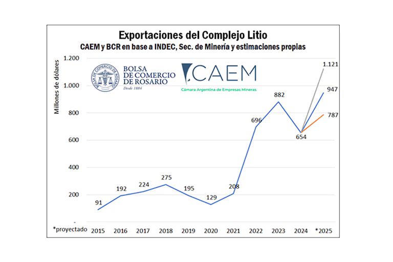 De cara a 2025, el informe plantea tres escenarios. En el más probable, en el que se concretan el 85 % de los proyectos en construcción y se mantiene el precio en torno a los USD 8.500 por tonelada, las exportaciones alcanzarían los USD 947 millones, lo que significaría un aumento del 44 % respecto a 2024.