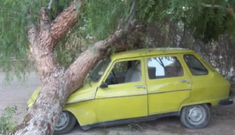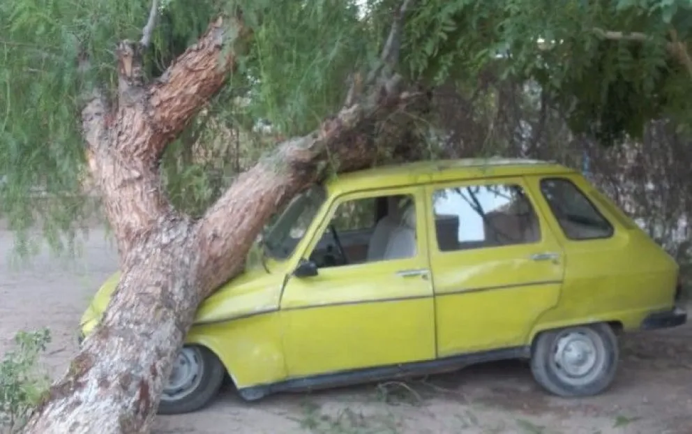 Las fuertes ráfagas de viento registradas durante la madrugada de este miércoles provocaron diversos incidentes en el departamento. El hecho más impactante ocurrió en la Villa San Martín, donde un ejemplar de pimiento de gran tamaño se desplomó sobre el automóvil de Ariel Cornejo, conocido intérprete de la zona.