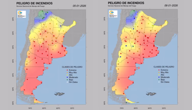 El Servicio Nacional de Manejo del Fuego (SNMF) y el Servicio Meteorológico Nacional declararon un “riesgo extremo de incendios” para casi toda la Argentina. Un total de dieciséis provincias figuran en rojo en el mapa oficial, abarcando desde el norte del país hasta la Patagonia, y las autoridades hicieron un llamado a extremar los cuidados frente a condiciones ambientales que favorecen la propagación del fuego.