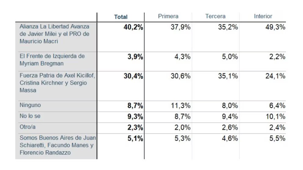 Esa una idea que se ve confirmada por una encuesta que elaboró Rubikón Intel Argentina 48 horas antes del cierre de listas, y que le dio una ventaja de casi 10 puntos a LLA frente a Fuerza Patria en toda la provincia, más de 7% en la Primera Sección y empatados en la Tercera.
