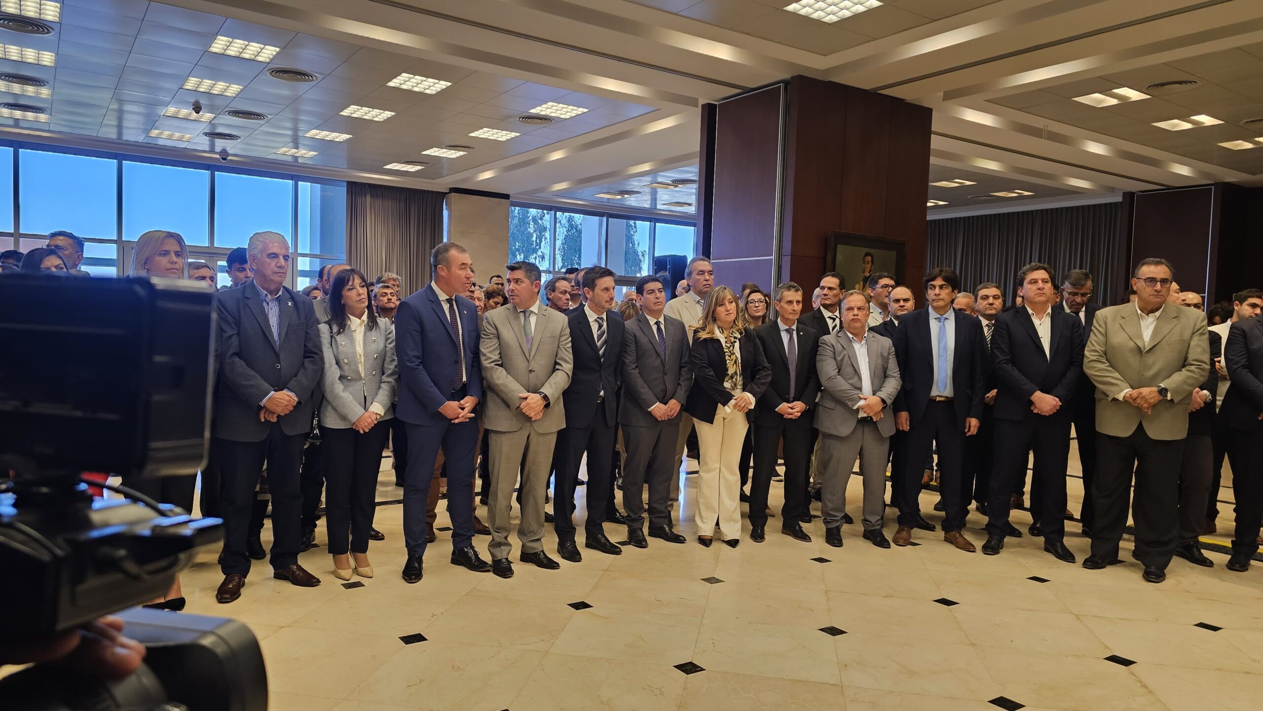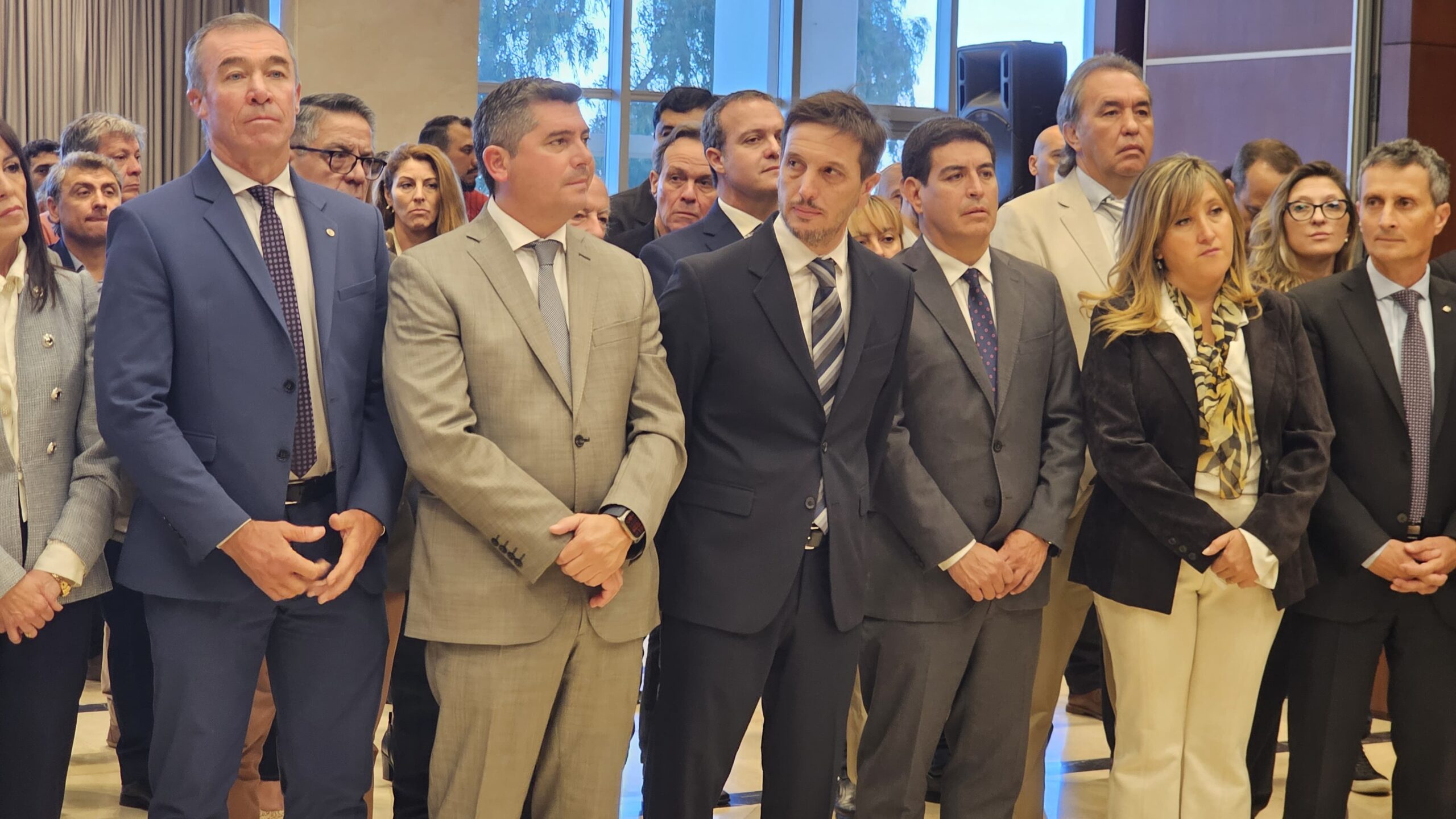 Eduardo Castro; rector de la Universidad Nacional de San Juan, Tadeo Berenguer; intendentes Municipales que acompañan de Jáchal, Matías Espejo; Calingasta, Sebastián Carbajal; Albardón, Juan Carlos Abarca; Santa Lucía, Juan José Orrego; presidente de la Cámara Minera de San Juan, Ricardo Martínez; presidentes, Representantes de Cámaras y Empresarios del sector y demás funcionarios.