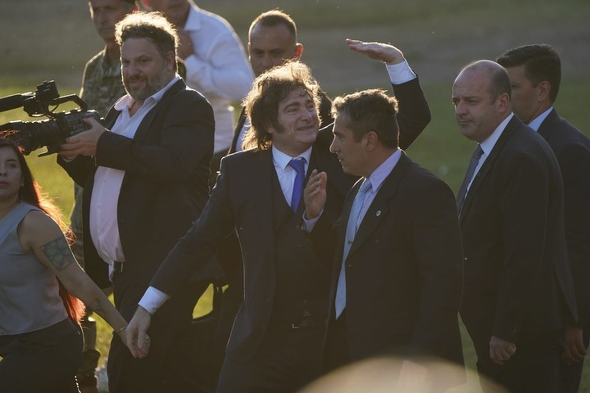 Milei ingresó al predio acompañado por su hermana y secretaria general de la Presidencia, Karina Milei, y rompió el protocolo al acercarse a saludar al público presente en las tribunas. Tras el acto central, se desarrolló un desfile de granaderos con la participación de la Fanfarria del Alto Perú y agrupaciones tradicionalistas, con tropas montadas y formaciones históricas.