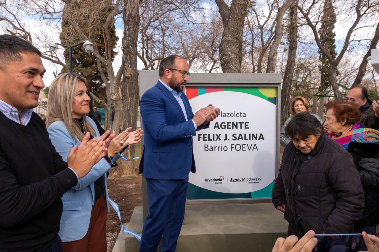 “Es un honor para nosotros poder inaugurar refacciones en una plaza que lleva el nombre de una persona que dio su vida por salvar la de otra, Félix Javier Salina es un verdadero ejemplo de valentía, coraje y lucha, un verdadero héroe de Rivadavia”, destacó Sergio Miodowsky, Intendente de Rivadavia.