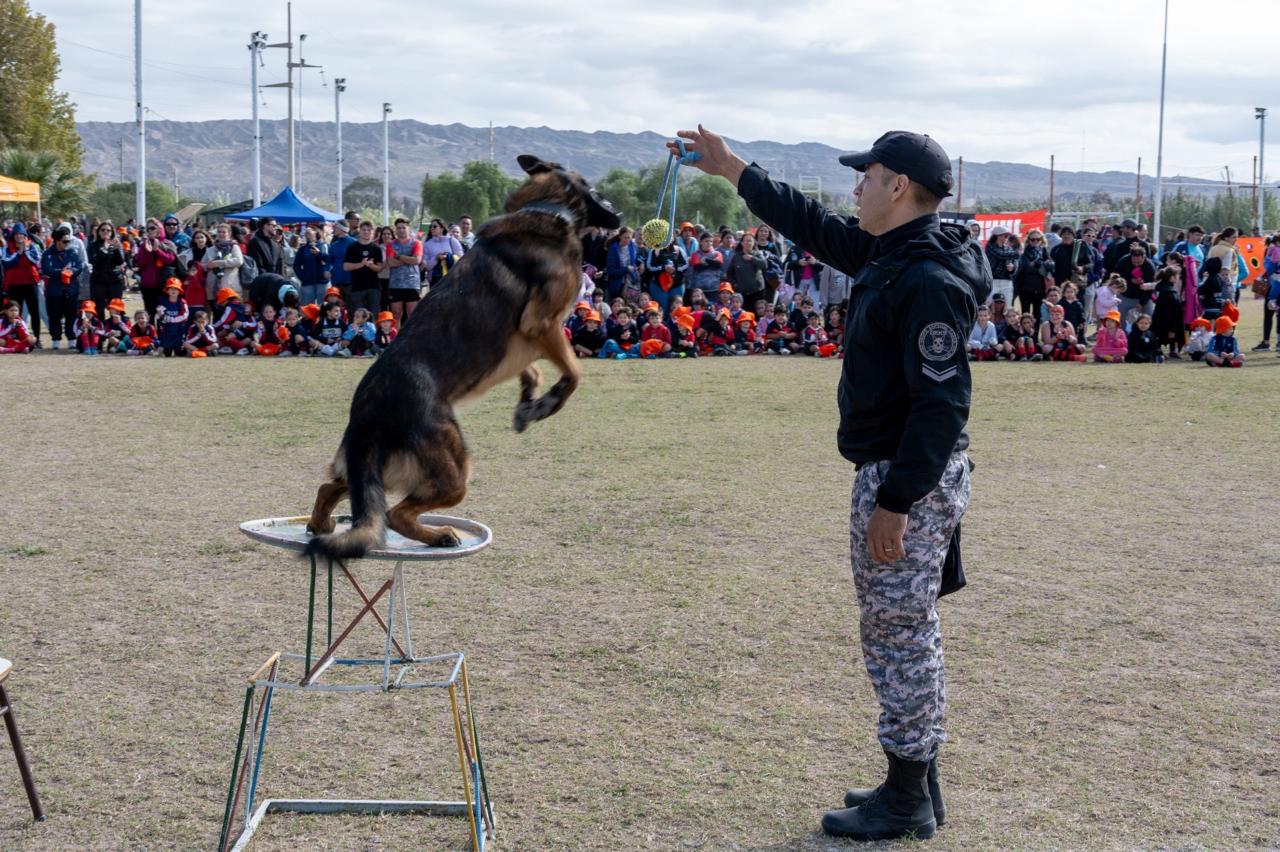 energía de las escuelitas deportivas y la expectativa de los más chicos, que siguieron cada movimiento con asombro. En ese clima, los canes y sus guías lograron transformar una demostración técnica en un momento de encuentro, aprendizaje y emoción.