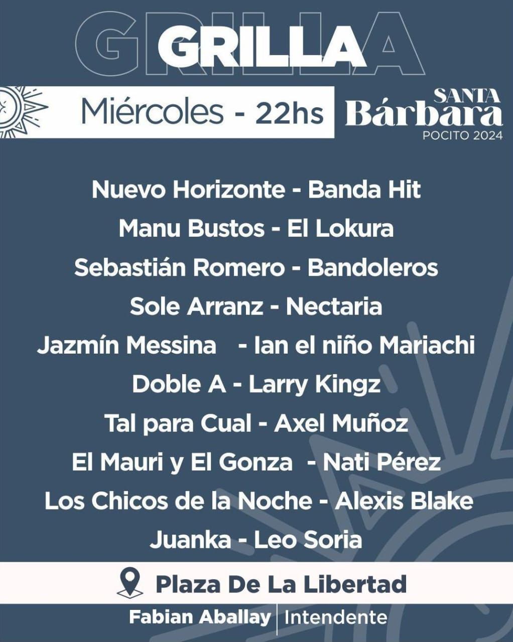 Esta noche, a partir de las 22 horas en la Plaza De La Libertad, se subirá el telón de la Fiesta de Santa Bárbara 2024 que organiza la Municipalidad de Pocito y que se extendrá hasta el domingo 8 de diciembre.