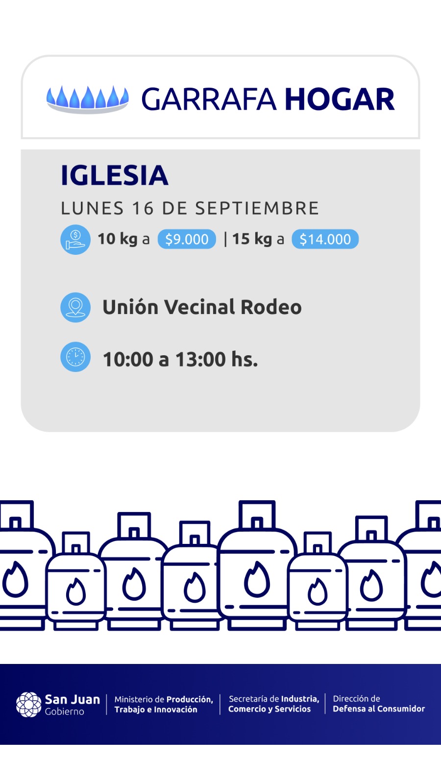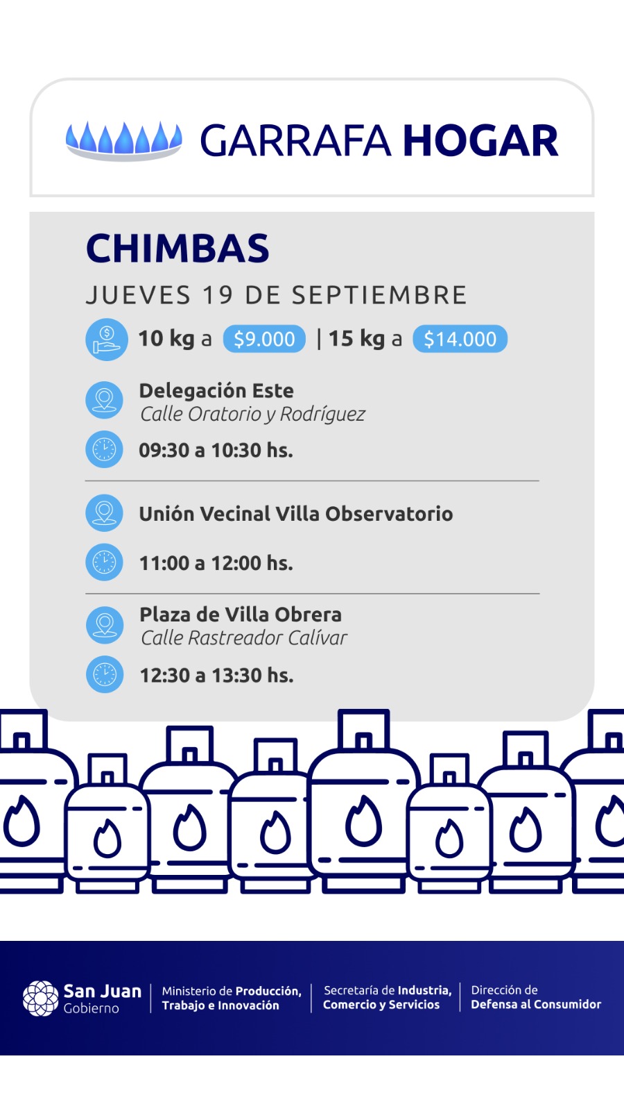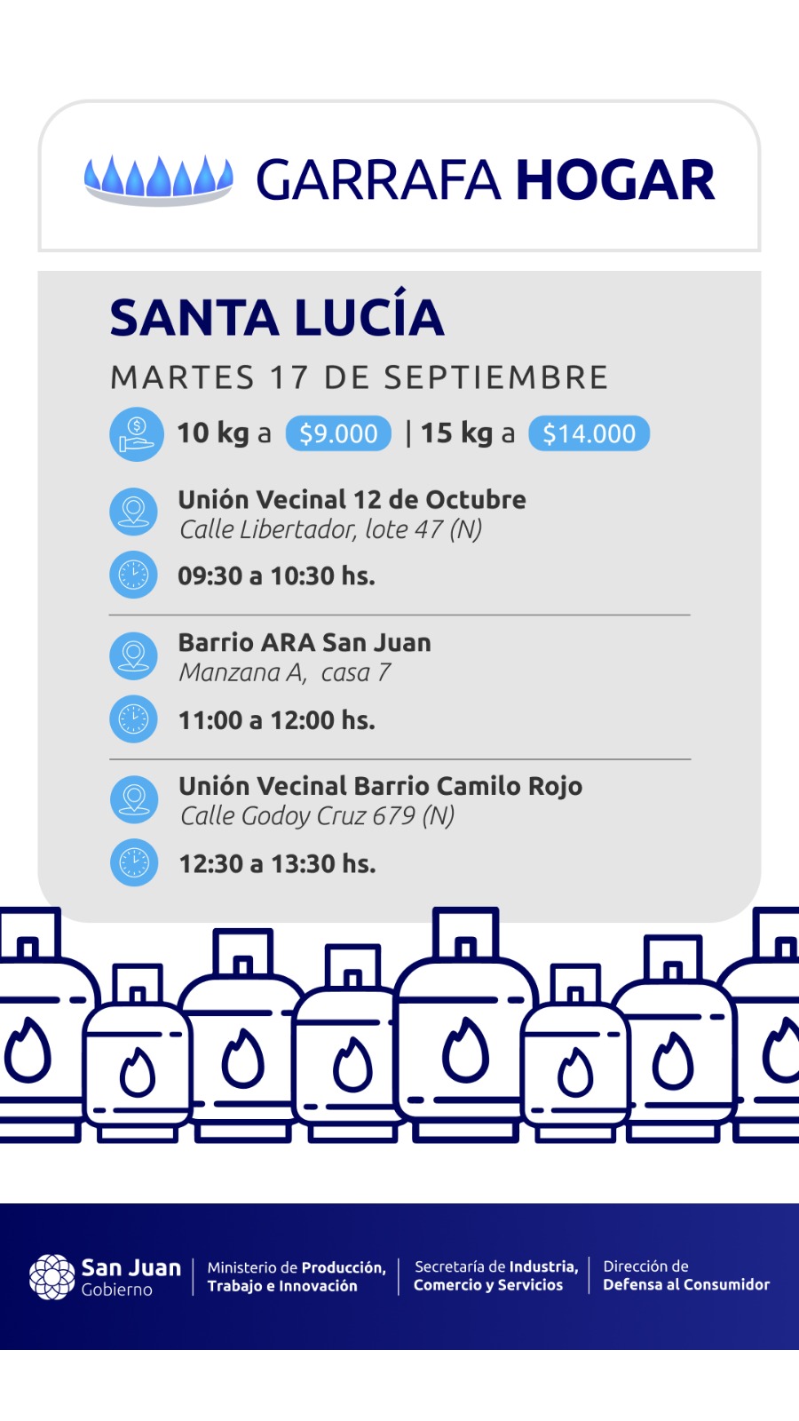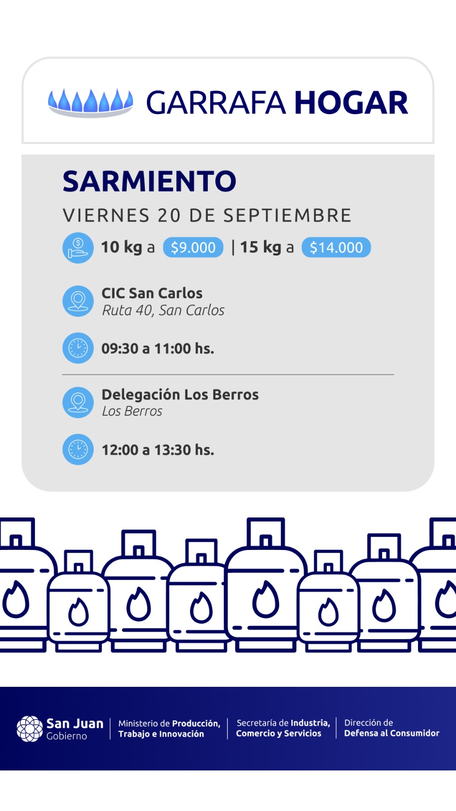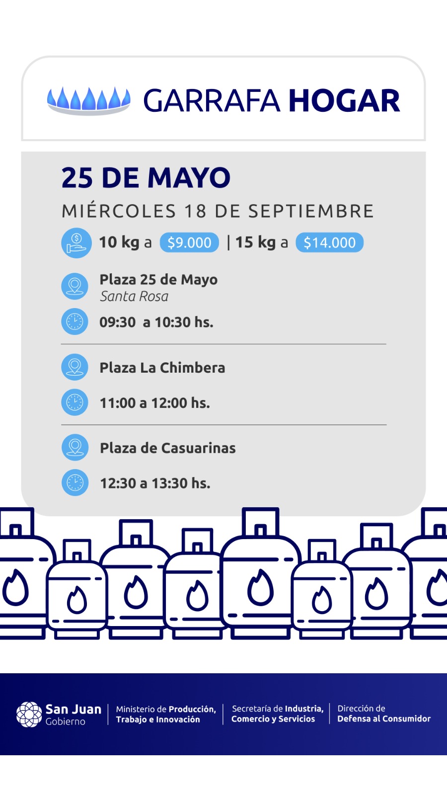 El plan impulsado por el gobernador Marcelo Orrego para llevar garrafas muy por debajo del valor comercial, visitará 5 departamentos en esta semana que culmina el 21 de Septiembre.