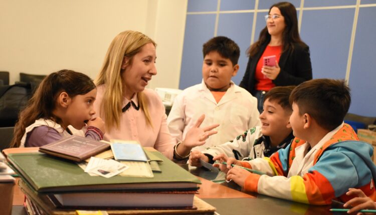 En el marco de una actividad didáctica y pedagógica, 19 alumnos de segundo grado de la Escuela Justo José de Urquiza, del departamento Pocito, junto a las docentes Sandra Soria, profesora de enseñanza primaria, y Adriana Sánchez, profesora de Educación Especial y Trastorno de Aprendizaje, visitaron las instalaciones del Registro Civil para conocer de cerca las funciones que cumple este organismo clave del Ministerio de Gobierno. En ese lugar, fueron recibidos por la ministra de Gobierno, Laura Palma, quien disfrutó de un momento de juegos y aprendizaje sobre los trámites que realiza el Registro Civil. Los niños confeccionaron su propio DNI.