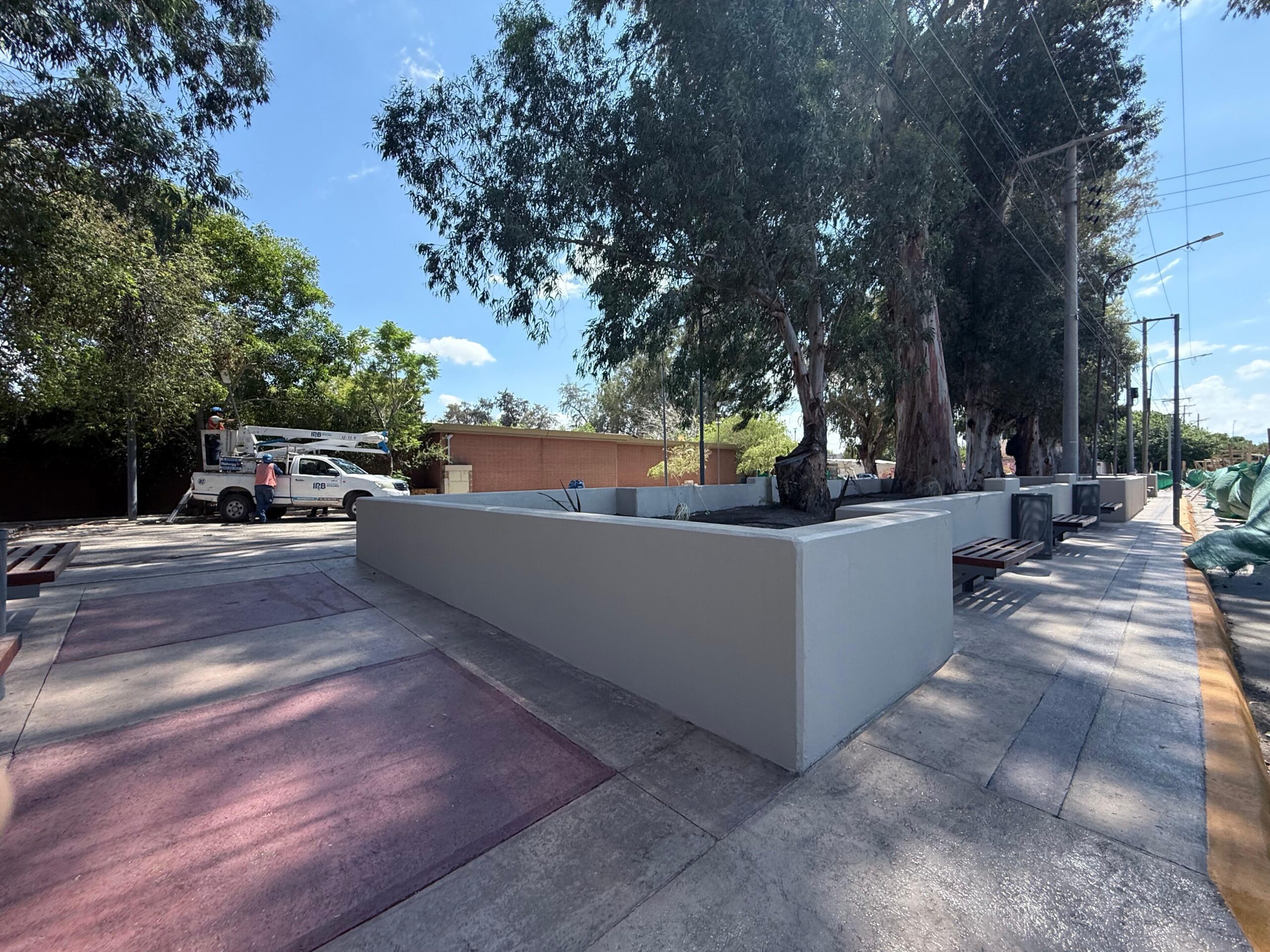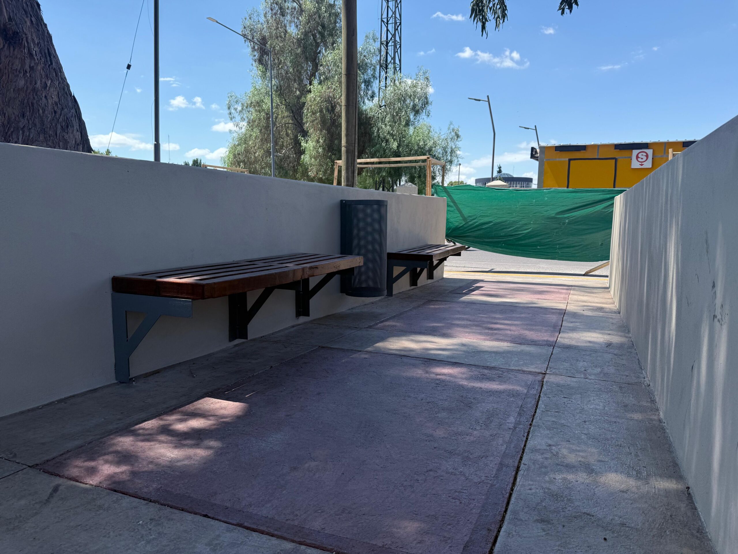 Actualmente, los trabajos de obra gruesa y terminaciones ya se encuentran finalizados. El espacio presenta sectores claramente definidos para la permanencia, la circulación peatonal y la incorporación de equipamiento urbano, integrados al entorno existente.