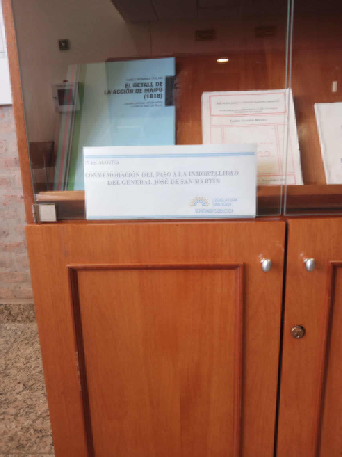 La Biblioteca Sarmiento Legislador de la Cámara de Diputados instaló, en el edificio Anexo de la Casa de Todos, una exhibición de recursos bibliográficos sobre el General José de San Martín en conmemoración de su aniversario de fallecimiento (17 de agosto).