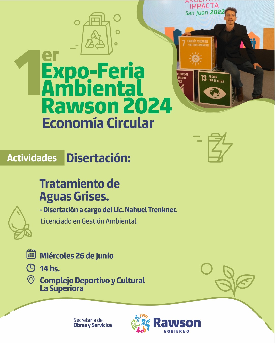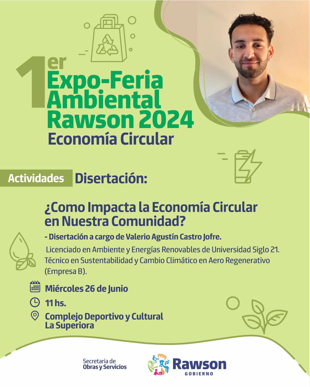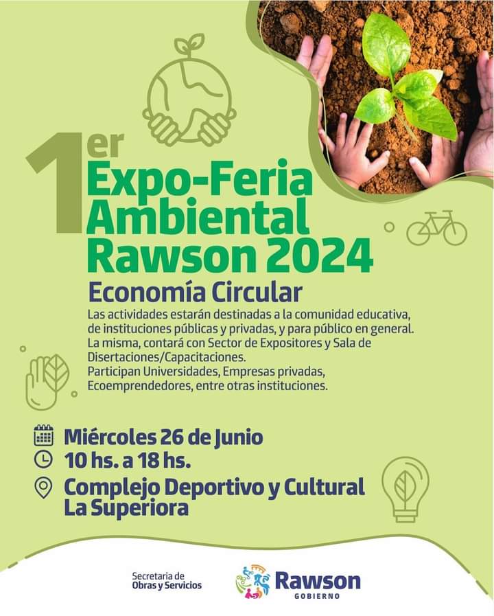 Este 26 de junio, la ciudad de Rawson se convertirá en el epicentro del compromiso ambiental con la 1° Expo-Feria Ambiental, enfocada en la Economía Circular. El evento se llevará a cabo en el Complejo Cultural y Deportivo La Superiora, desde las 10 de la mañana hasta las 18 horas.