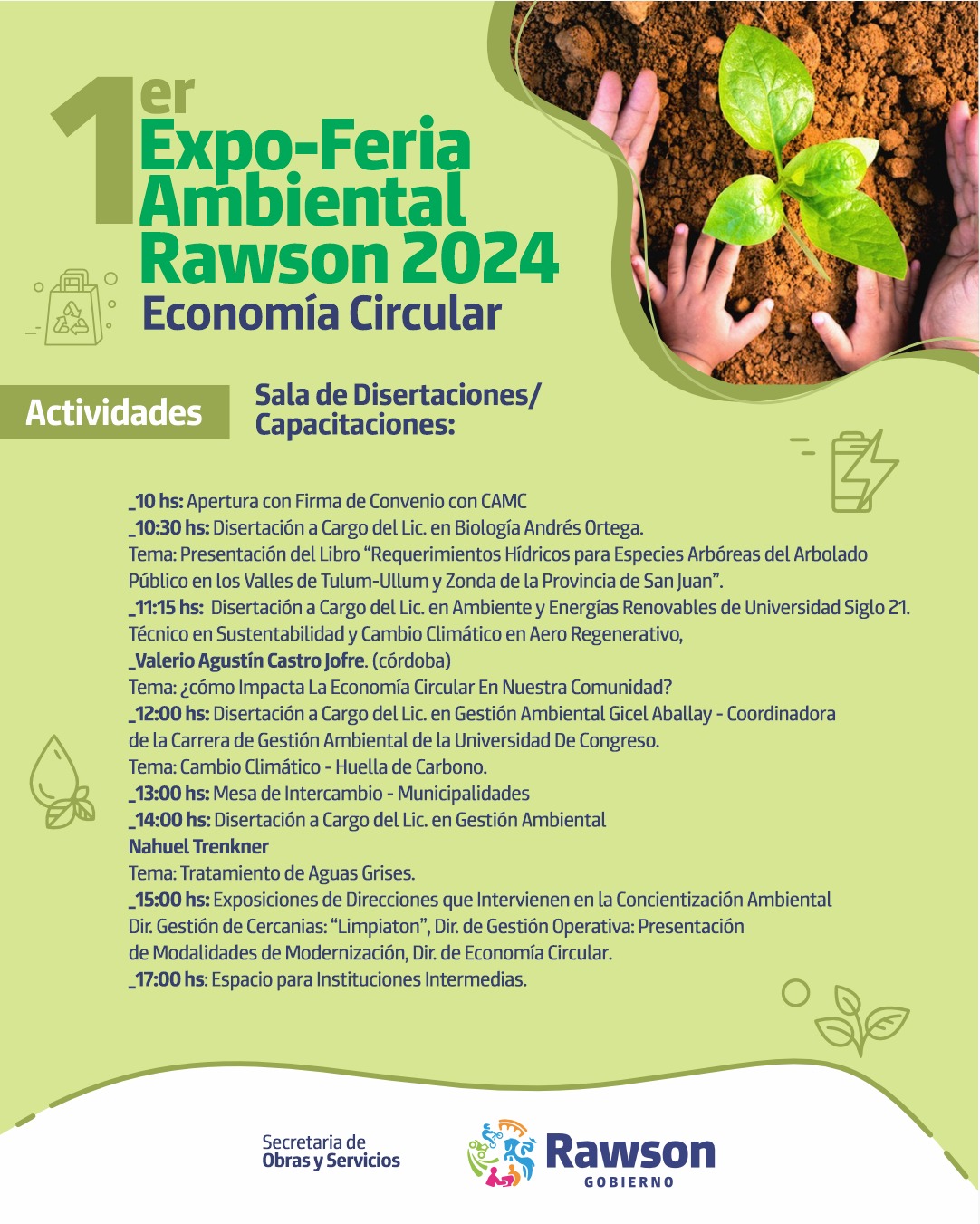 La entrada a la Expo-Feria Ambiental Rawson 2024 es gratuita y abierta al público en general.
