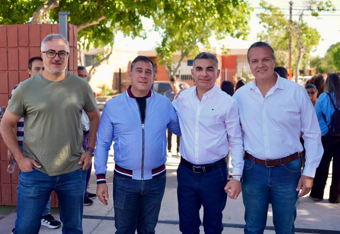 El dos veces intendente de Chimbas, ex candidato a vicegobernador y actual aspirante a una banca en el Congreso Nacional, llegó al establecimiento acompañado por sus hijas Camila y Lourdes, como acostumbra a hacerlo en cada elección. También estuvieron presentes la intendenta de la Ciudad de Chimbas Daniela Rodríguez, el diputado departamental Gabriel Sánchez, el presidente del Congreso Provincial del PJ Ariel Palma, y el intendente de Angaco José Castro.