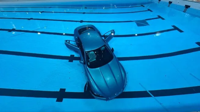 Un auto de lujo terminó en el fondo de una pileta municipal en el sur de Francia