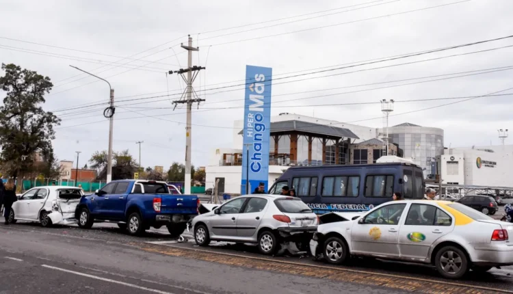 Un accidente de tránsito múltiple generó caos pasado el mediodía de este viernes en una concurrida zona de Rivadavia, San Juan. El hecho ocurrió alrededor de las 14:00 horas en la avenida Ignacio de la Roza, a pocos metros de la intersección con Mariano Moreno, frente a un conocido centro comercial de la zona.