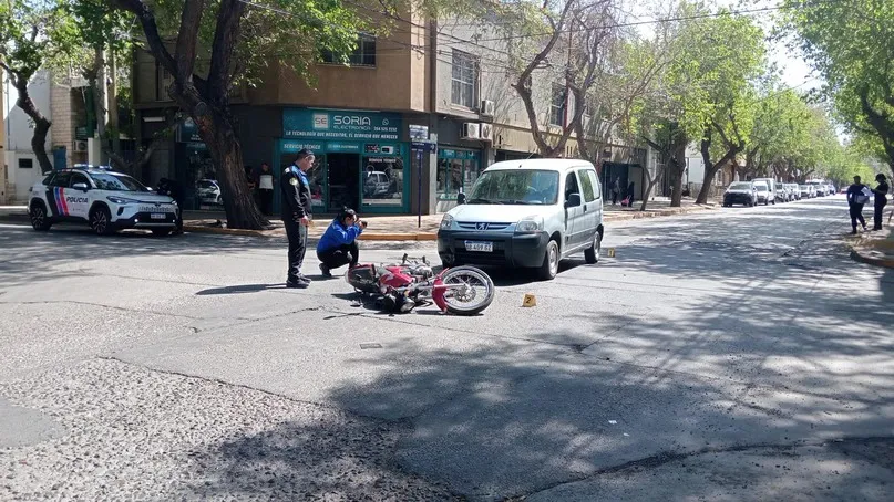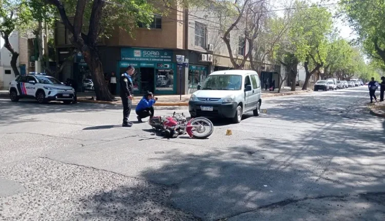 Un siniestro vial generó conmoción en la mañana de este viernes 12 de septiembre en pleno microcentro sanjuanino. El hecho ocurrió en la intersección de las calles Laprida y Aberastain, donde una moto, en la que circulaban una mujer y una niña, fue embestida por un vehículo utilitario.
