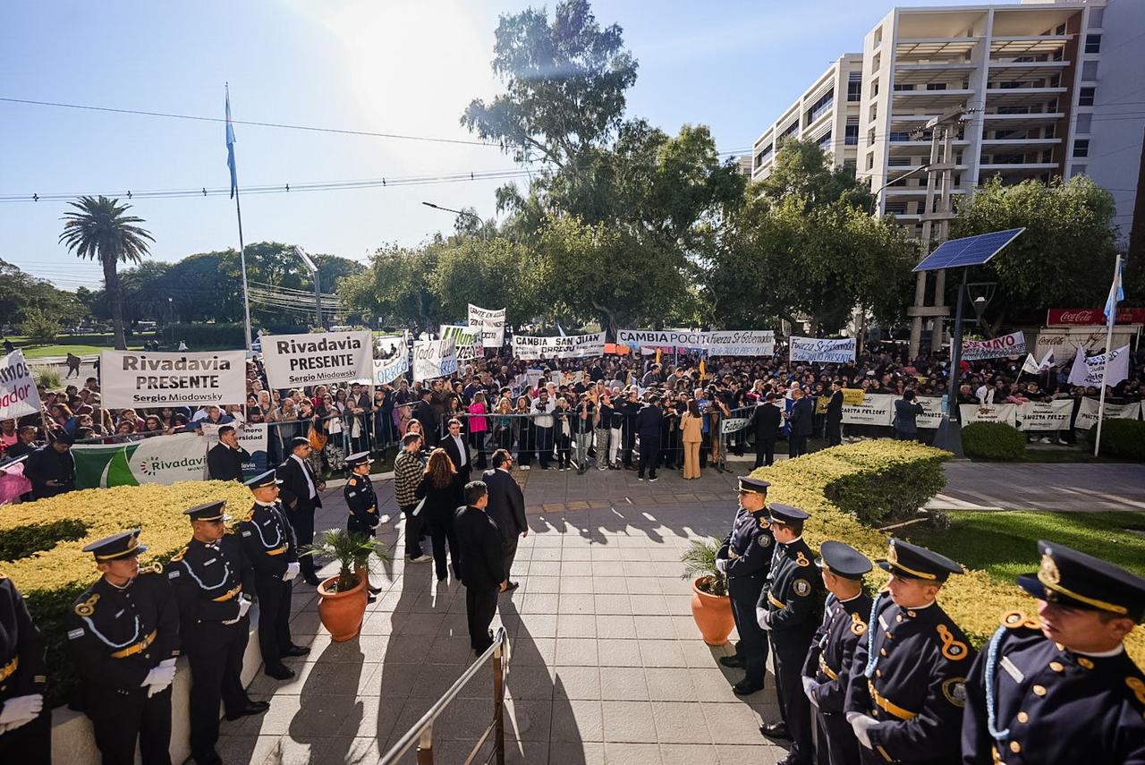 Miles de seguidores de Marcelo Orrego se concentraron en las calles para acompañar el discurso del gobernador en la Cámara de Diputados.