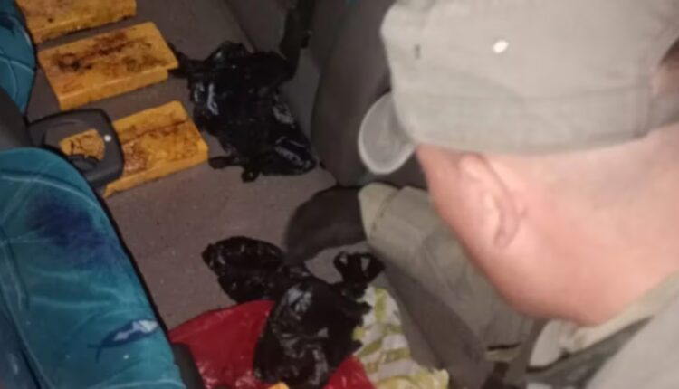 Durante la revisión del vehículo, los agentes descubrieron tres mochilas sin un propietario identificado, ubicadas debajo de los asientos. Tras abrir las mochilas, encontraron un total de 30 paquetes rectangulares que contenían una sustancia en polvo de color blanco.
