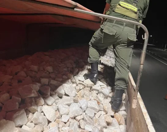 En un control de rutina realizado sobre la Ruta Nacional 141, personal del Escuadrón 66 de Gendarmería Nacional detuvo la marcha de un camión con acoplado que trasladaba 30 toneladas de cuarzo desde Valle Fértil hacia la provincia de Mendoza. Lo que parecía un procedimiento habitual derivó en una infracción por incumplimiento de las normas que regulan el traslado de recursos naturales.