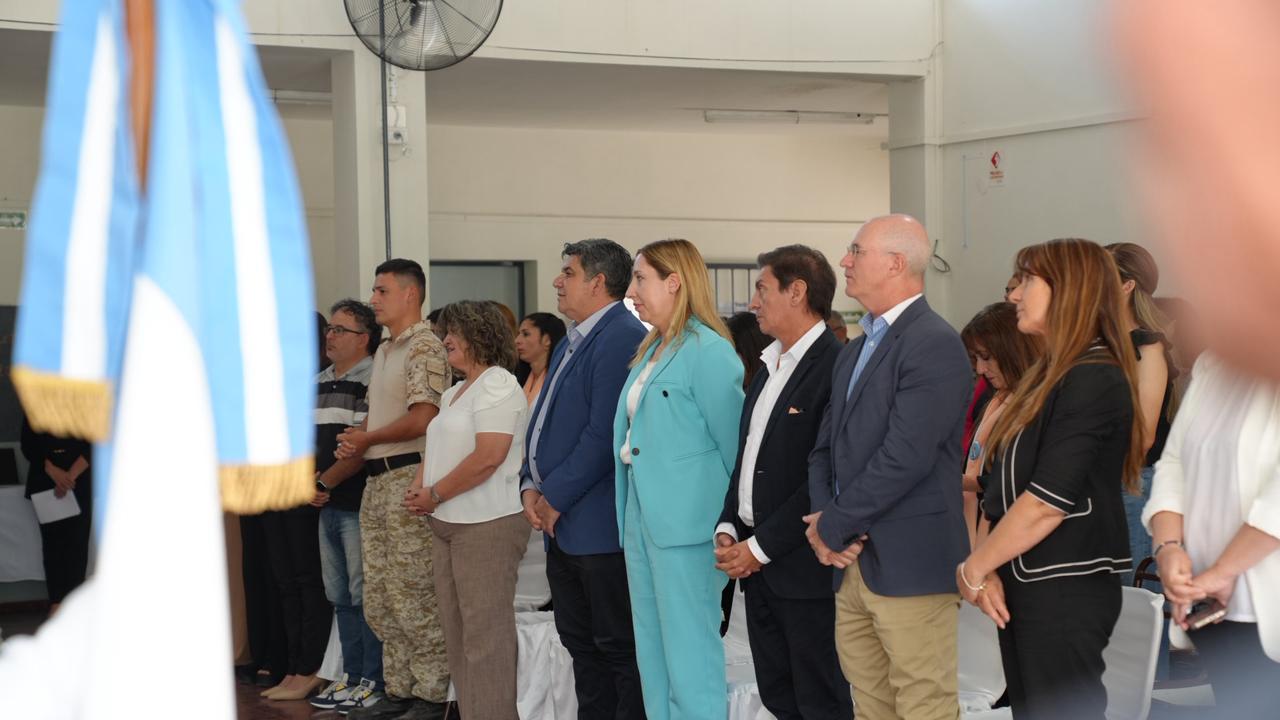 Además de la ministra Palma, se hicieron presentes en el acto el secretario de Gobierno, Justicia y Derechos Humanos Juan José Dubos; la directora del Registro Civil Verónica Benedetto y la subdirectora María Eugenia González, el intendente de Sarmiento Alfredo Castro, la concejal municipal Marcela González, la directora de Cultura de la municipalidad de Sarmiento Adriana Belivone, el director del establecimiento escolar Dr. Anacleto Gil Juan José Miranda, el sacerdote Rómulo Cámpora, e integrantes de la comunidad escolar y departamental.