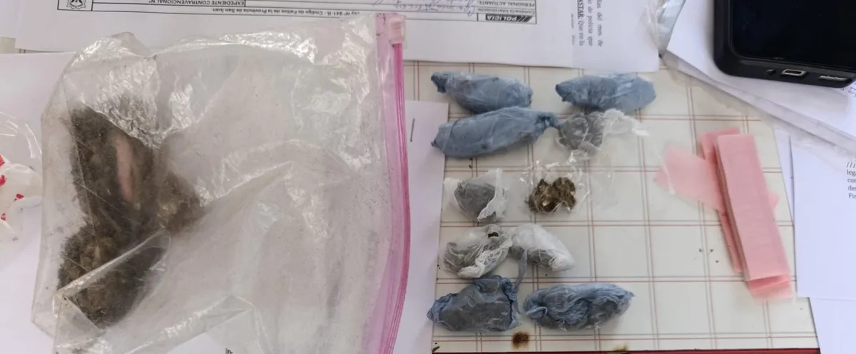 • Hallazgo: Tras mostrarse hostil y negarse a la requisa, el palpado de urgencia reveló que llevaba un frasco de vidrio, papel de liar y 18 cigarrillos armados (dos a medias y 16 en un envoltorio plástico).