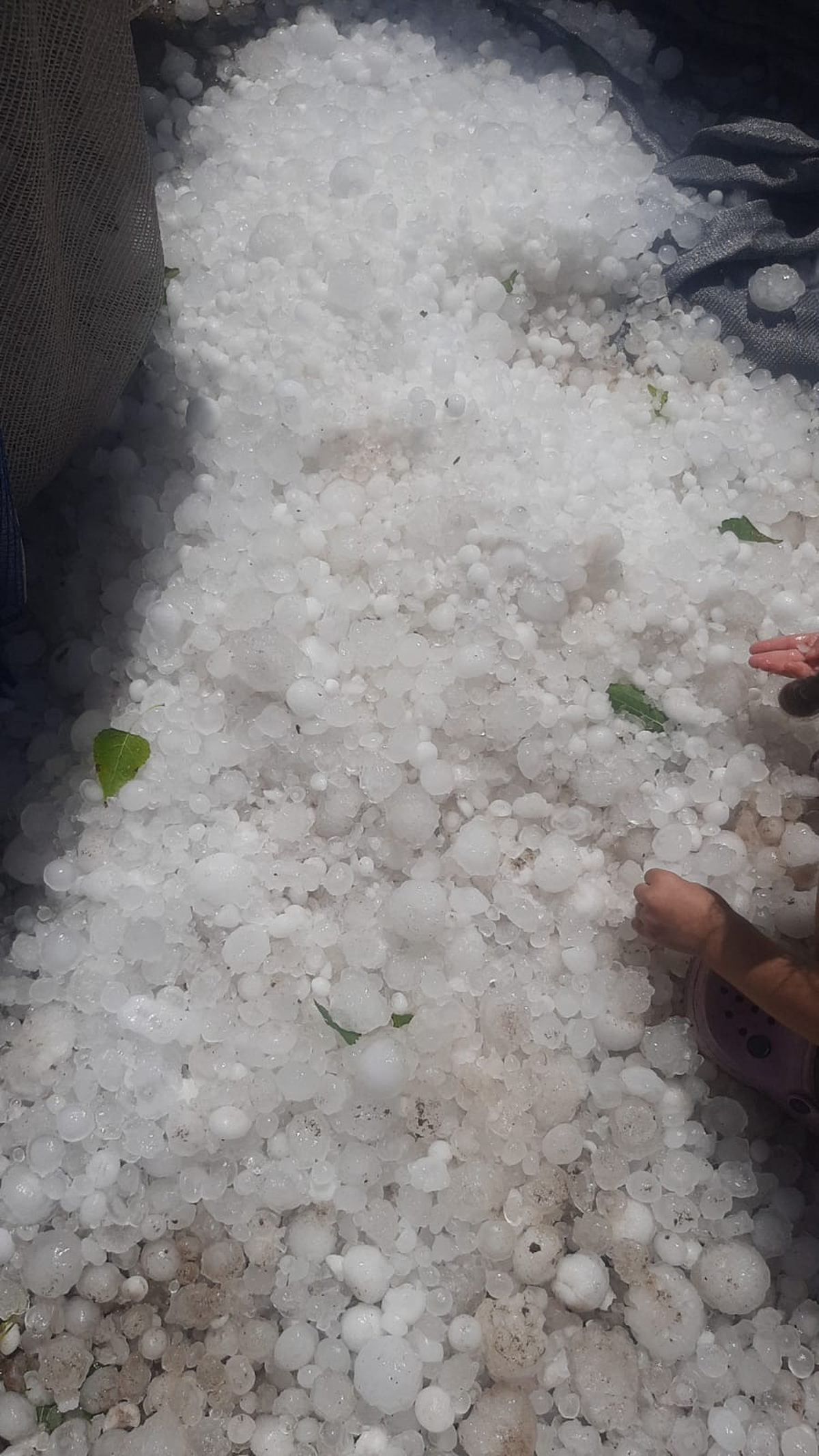 Dos departamentos del sur de San Juan, Sarmiento y 25 de Mayo, fueron afectados este lunes por una fuerte tormenta que incluyó una importante caída de granizo. La tormenta sorprendió a los productores locales pasadas las 14:00, dejando daños significativos en los cultivos.
